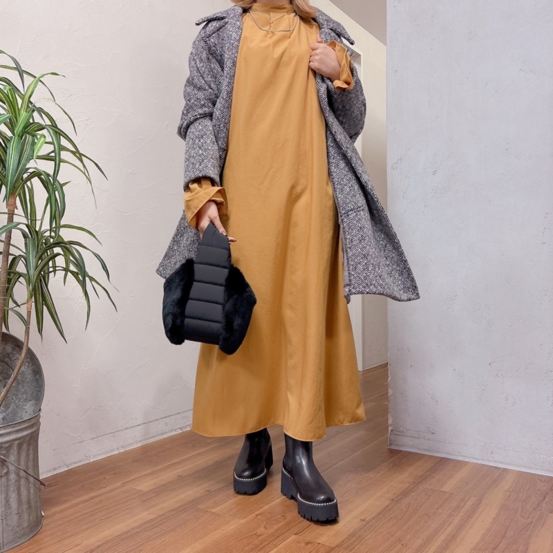 サラッと素材で今の季節に一枚でオシャレを楽しめるデザインが可愛いワンピース。