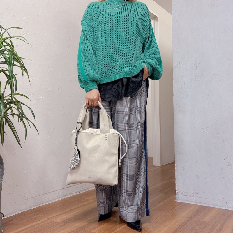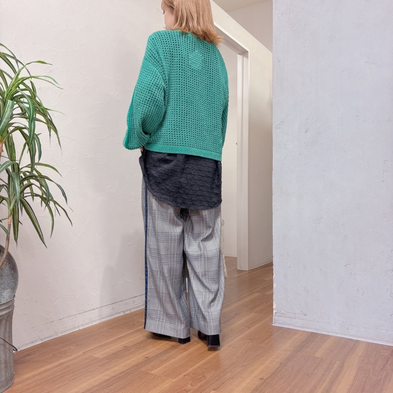 クラシックなチェック柄のパンツで落ち着いた雰囲気をプラス。