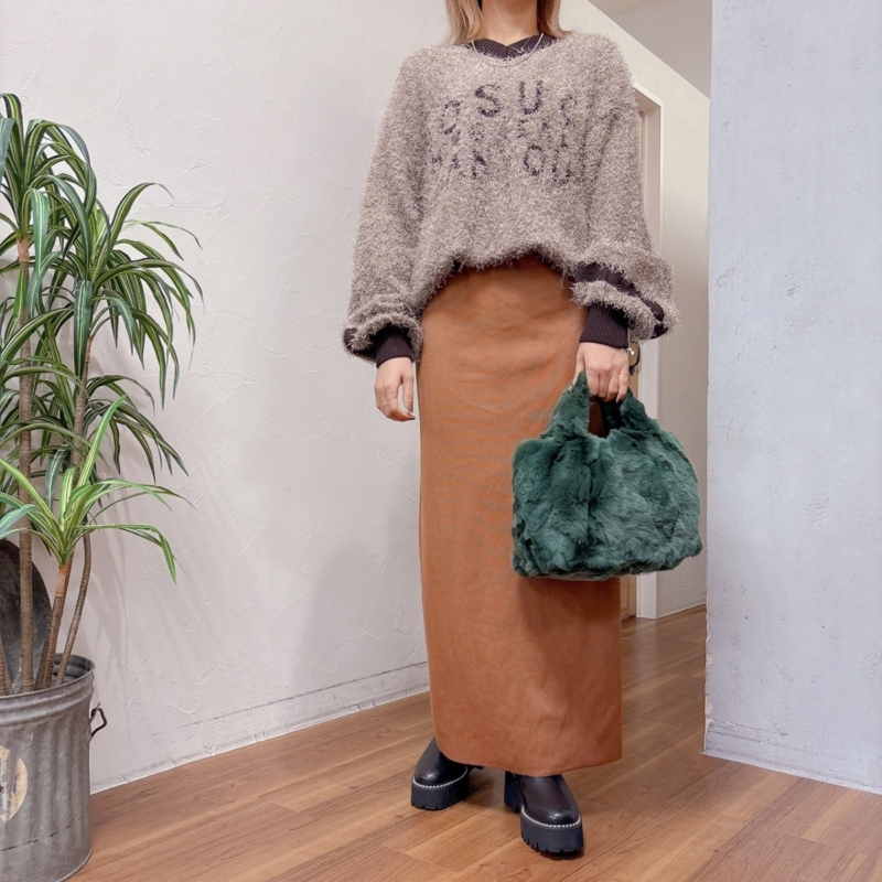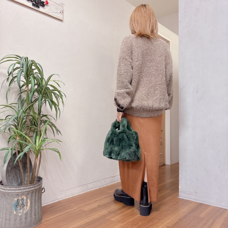 ゆったりとしたシルエットでカジュアルながらも秋色カラーで大人っぽさも演出。