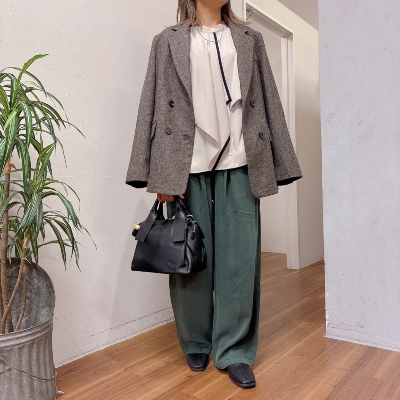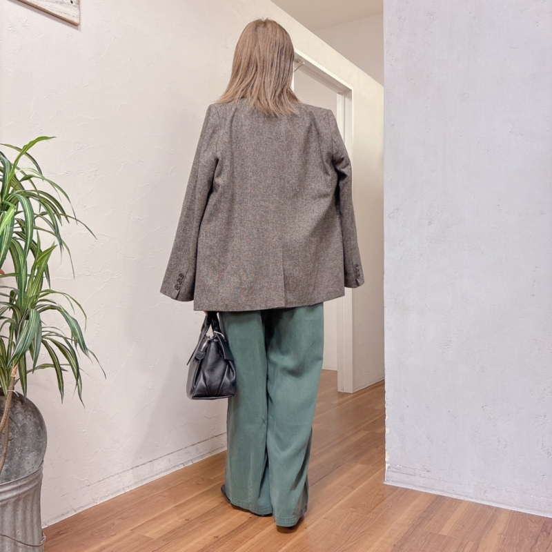 リサSELECTのウールジャケットを羽織に使った大人コーデ。