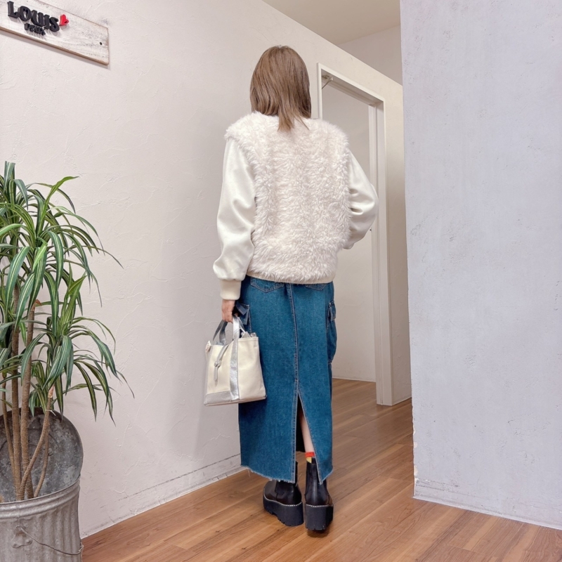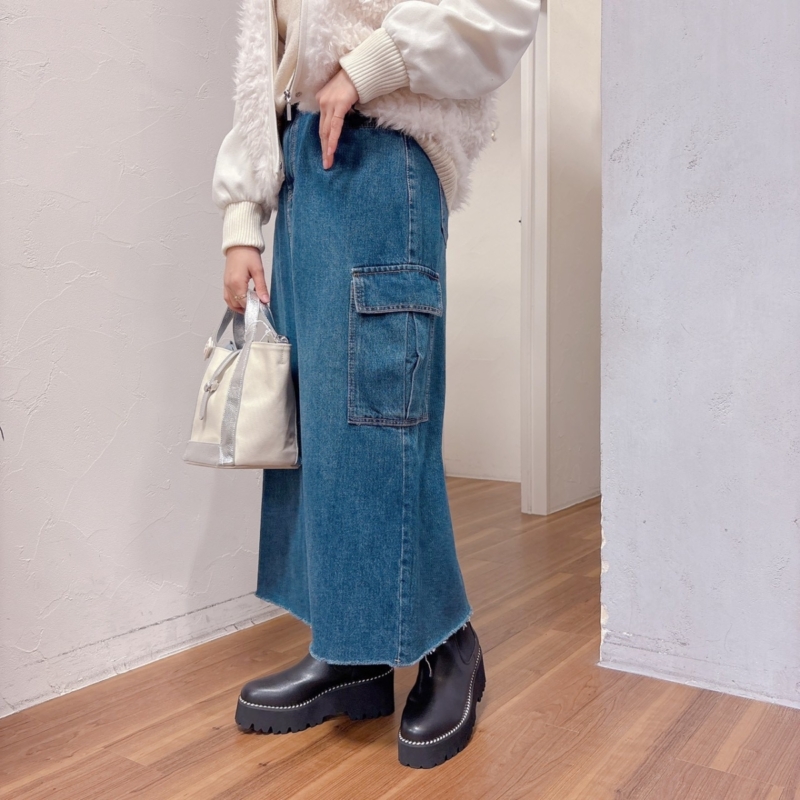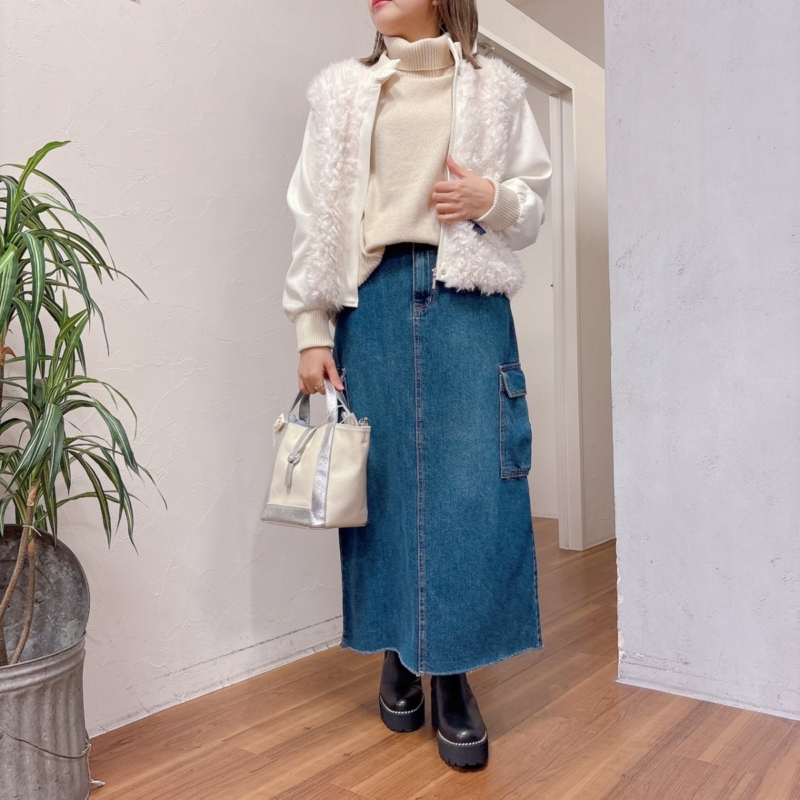 オールホワイトよりデニムで合わせると着こなしがしやすく、こなれた雰囲気に。