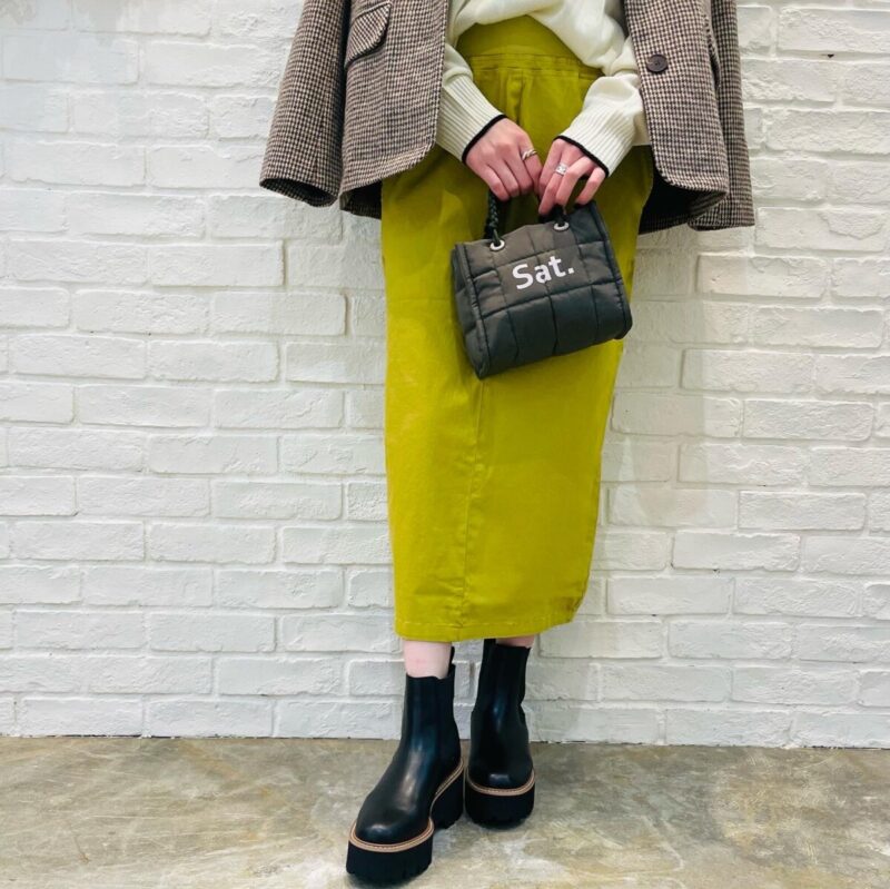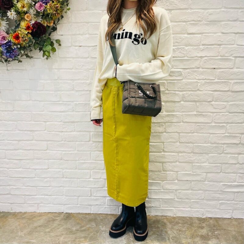 カラーのタイトスカートでバランスよく😊