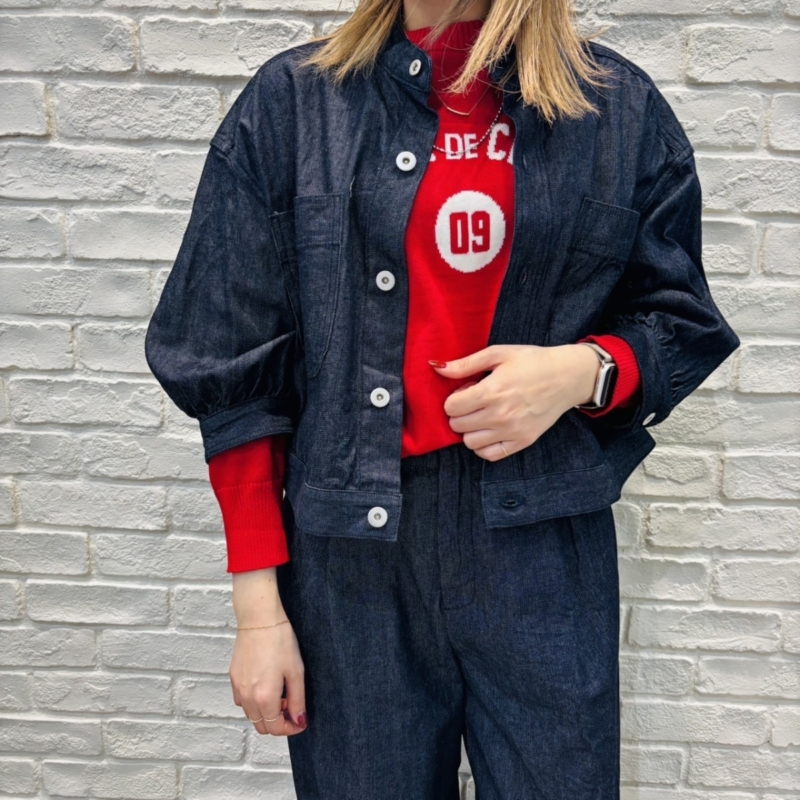 袖口ギャザーの7分丈のデニムジャケット