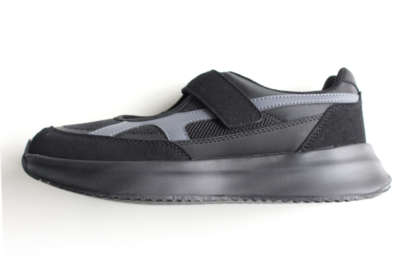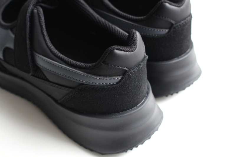 メッシュと起毛素材を組み合わせたレトロな雰囲気のアッパーに、軽量でクッション性の高い厚めのソールを組み合わせました